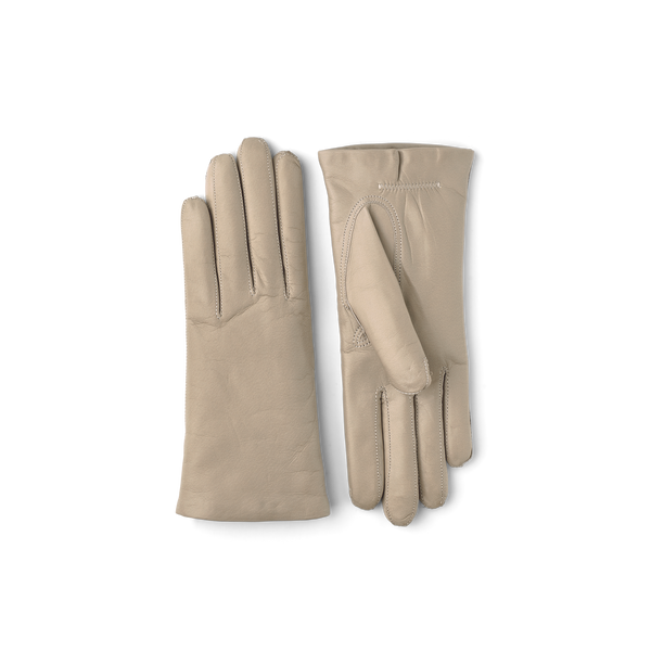 A short women’s glove with a sophisticated, streamlined design, sewn in Italian hairsheep leather with a knitted lining in the softest cashmere. The glove is cut by hand by glove cutters in Hestra’s workshop in Hungary and the craftsmanship is masterly, with piqué seams on the backhand and palm. The glove is close-fitting and the lining in cashmere is beautifully warming on cold days in autumn and winter.