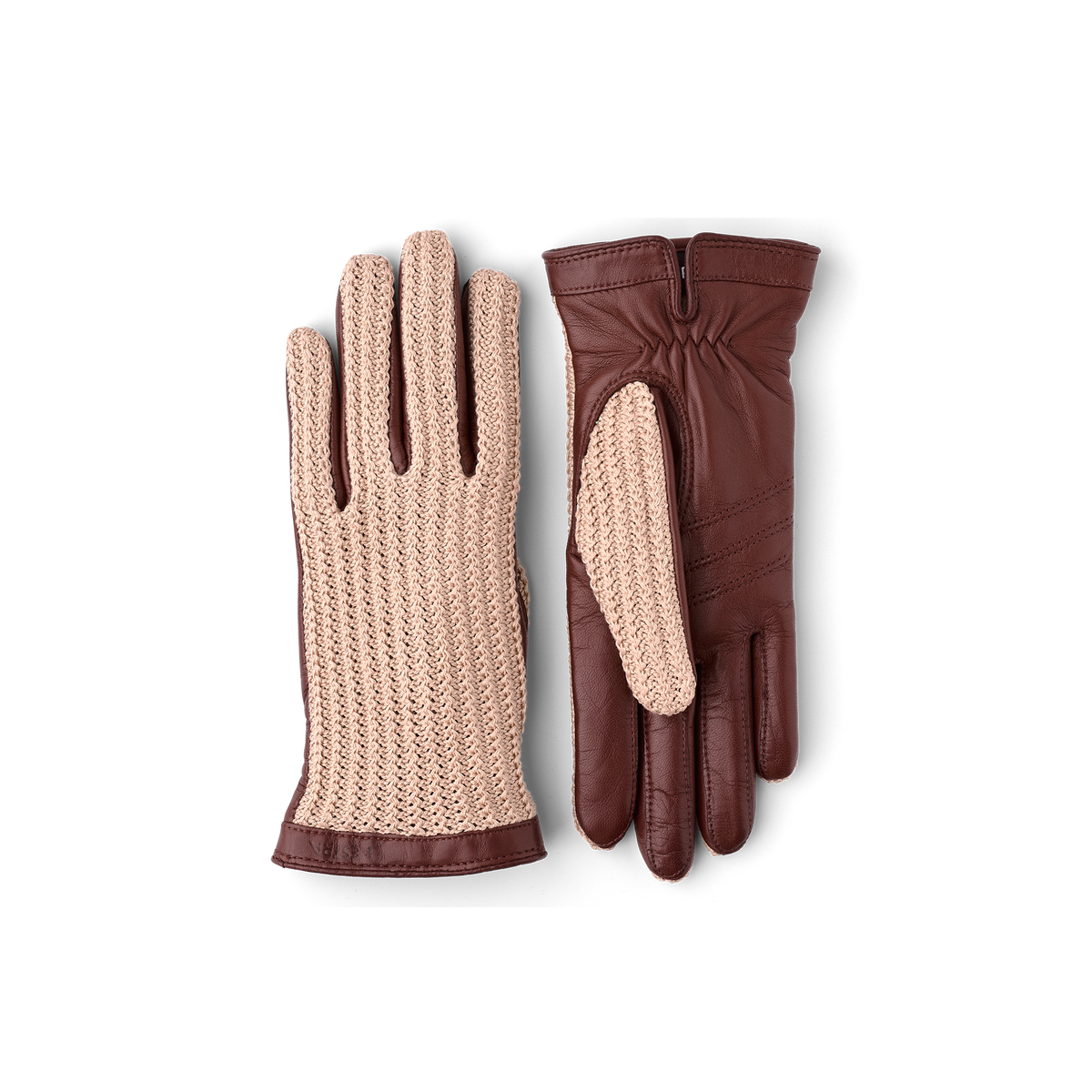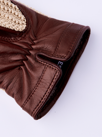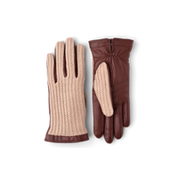 An elegant leather glove with cotton crochet on the backhand. Sewn in exclusive Italian lamb nappa, a soft, supple leather with high sheen. A thin, knitted wool lining makes t...