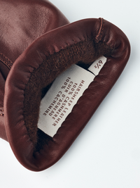 A short women’s glove with a sophisticated, streamlined design, sewn in Italian hairsheep leather with a knitted lining in the softest cashmere. The glove is cut by hand by gl...