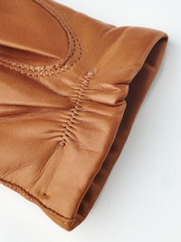 A short women’s glove with a sophisticated, streamlined design, sewn in Italian hairsheep leather with a knitted lining in the softest cashmere. The glove is cut by hand by gl...
