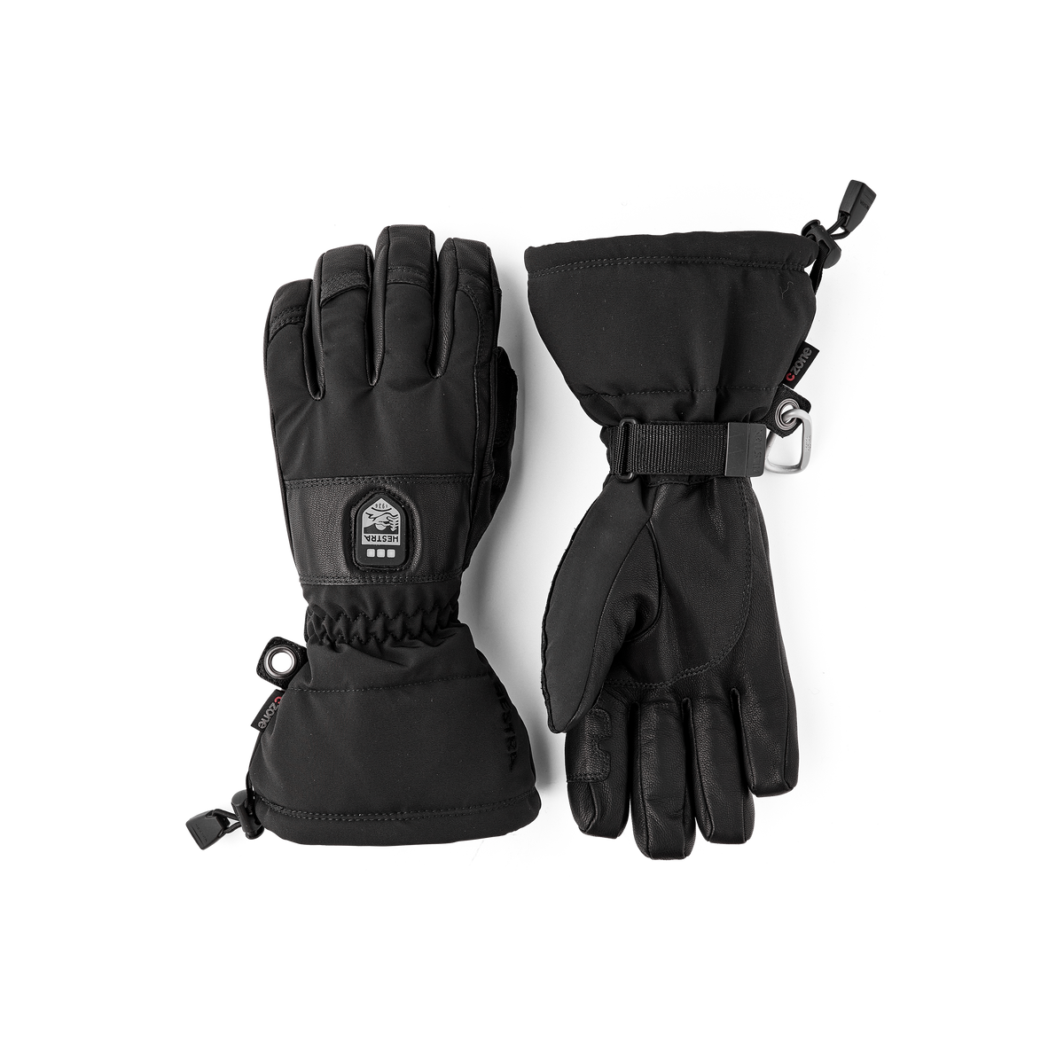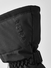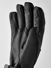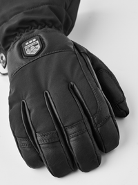 On colder winter days, heated panels on the fingertips help keep your fingers warm.* The heat is adjusted in three steps with an easily accessible control in the Hestra logo on the backhand. Replaceable and rechargeable batteries and a charger are included, as well as Hestra handcuffs (wrist straps) to make sure you don’t drop the glove. Velcro adjustment at inside wrist, and a battery pocket in the cuff.