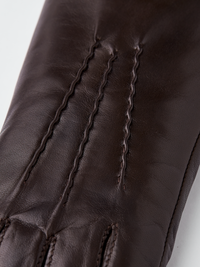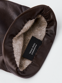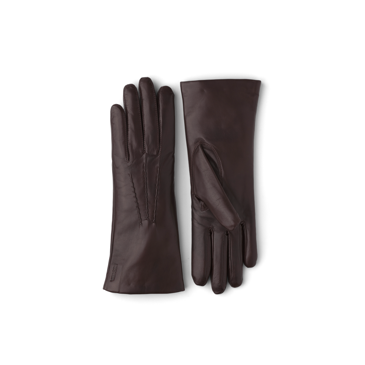 An elegant and timeless leather glove with a soft, knitted wool lining. Sewn in supple Italian lamb nappa with handsewn decorative stitching on the backhand. The fit is femini...