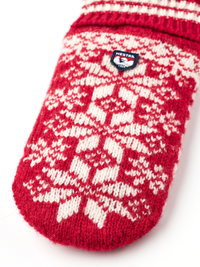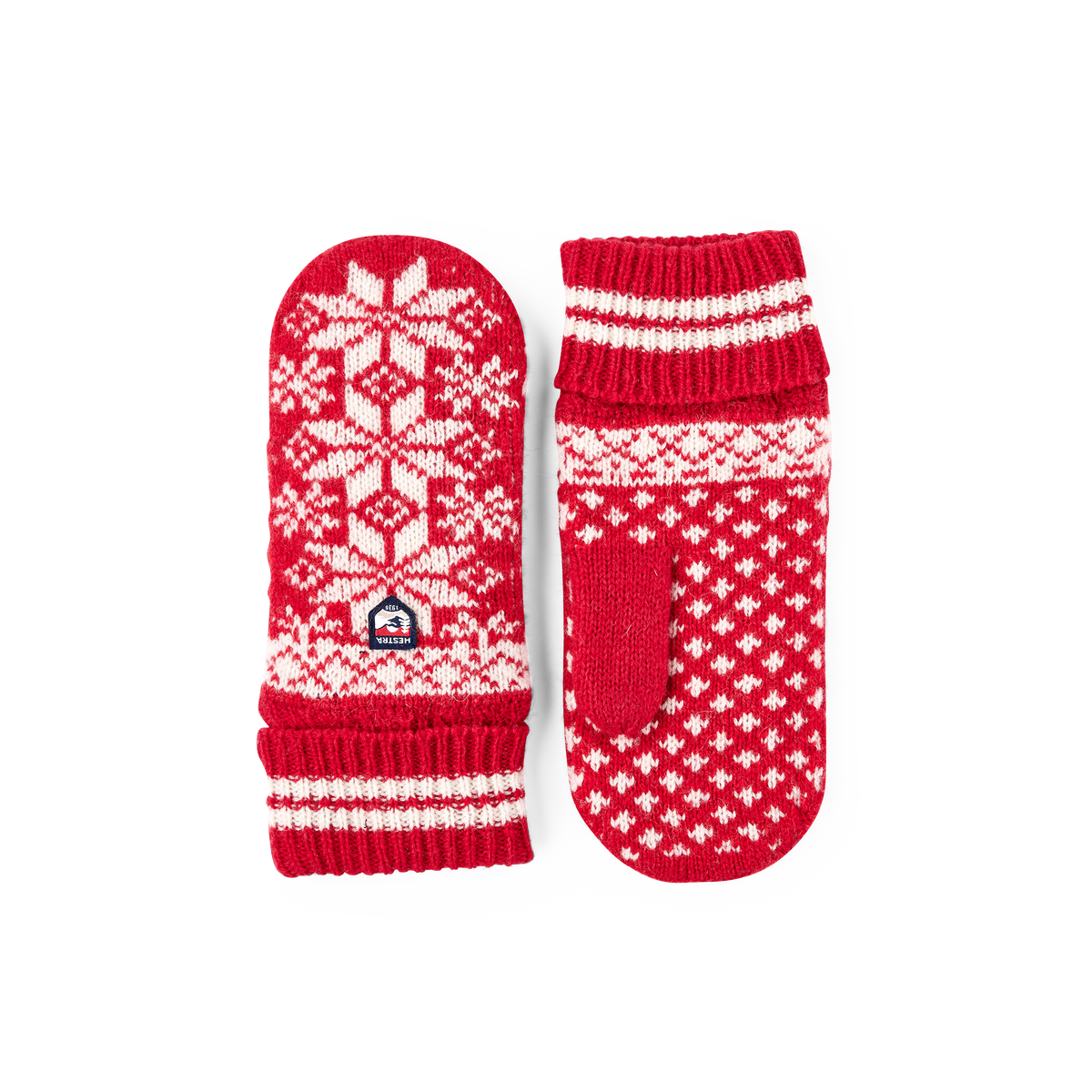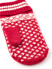 A soft, comfortable kids’ mitten. Fair Isle knitted in a wool blend in a classic Nordic pattern with a ribbed cuff. A timeless, beautiful design that keeps hands warm in milde...